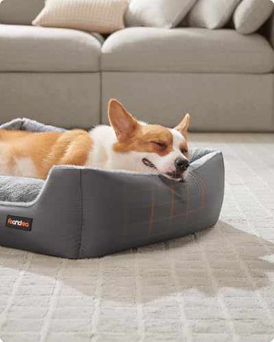 [Gut unterstützt] Die erhöhten und gut gepolsterten Kanten des rechteckigen Hundebetts bieten Unterstützung für Kopf und Nacken des Hundes und geben ein Gefühl der Sicherheit, damit Ihr pelziger Freund gut schlafen kann