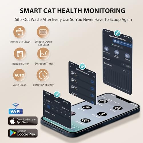 -25%【WC FÜR KATZEN MIT APP-KONTROLLE】Die selbstreinigende Katzentoilette ist mit Wi-Fi 2,4 GHz verbunden. Sie können das Gewicht und die Aktivität Ihrer Katze in Echtzeit überwachen. Intelligente Sensoren erfassen die Häufigkeit und Dauer der Toilettenbesuche, um die Gesundheit Ihrer Katze zu überwachen.